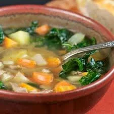 This soup was developed primarily to relieve acid reflux. Kale and bitters reduce stagnation in the digestive tract and clear heat. Carrot and vegetables with beta-carotene reduce Pitta. Fennel improves digestion without increasing Pitta. Fresh ginger is an anti-inflammatory that improves digestion as well. Lime reduces acidity in the stomach. This soup keeps the body warm and in flow.